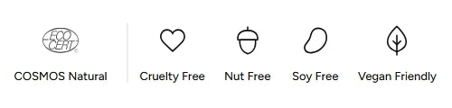 Certifié COSMOS Natural, formulé sans ingrédients d’origine animale et respectueux du bien‑être animal. Sans fruits à coque ni soja. Convient aux routines vegan.